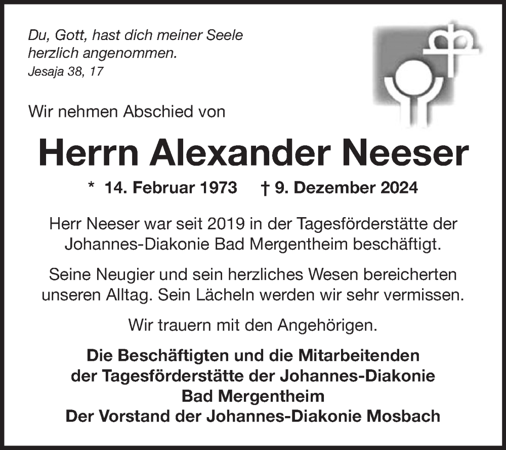 Hier finden Sie alle Traueranzeigen aus der Zeitung, die bisher für Alexander Neeser erschienen sind. Weitere Traueranzeigen, die in der Zeitung erscheinen, werden hier ebenfalls aufgelistet