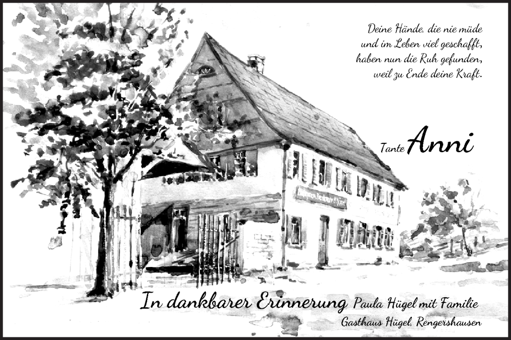 Hier finden Sie alle Traueranzeigen aus der Zeitung, die bisher für Anni Wilhelm erschienen sind. Weitere Traueranzeigen, die in der Zeitung erscheinen, werden hier ebenfalls aufgelistet
