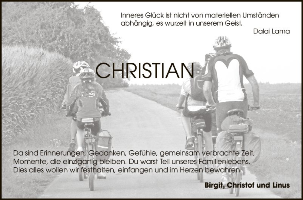 Hier finden Sie alle Traueranzeigen aus der Zeitung, die bisher für Christian Parth erschienen sind. Weitere Traueranzeigen, die in der Zeitung erscheinen, werden hier ebenfalls aufgelistet