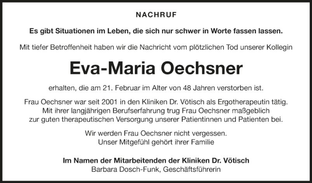 Hier finden Sie alle Traueranzeigen aus der Zeitung, die bisher für Eva-Maria Oechsner erschienen sind. Weitere Traueranzeigen, die in der Zeitung erscheinen, werden hier ebenfalls aufgelistet