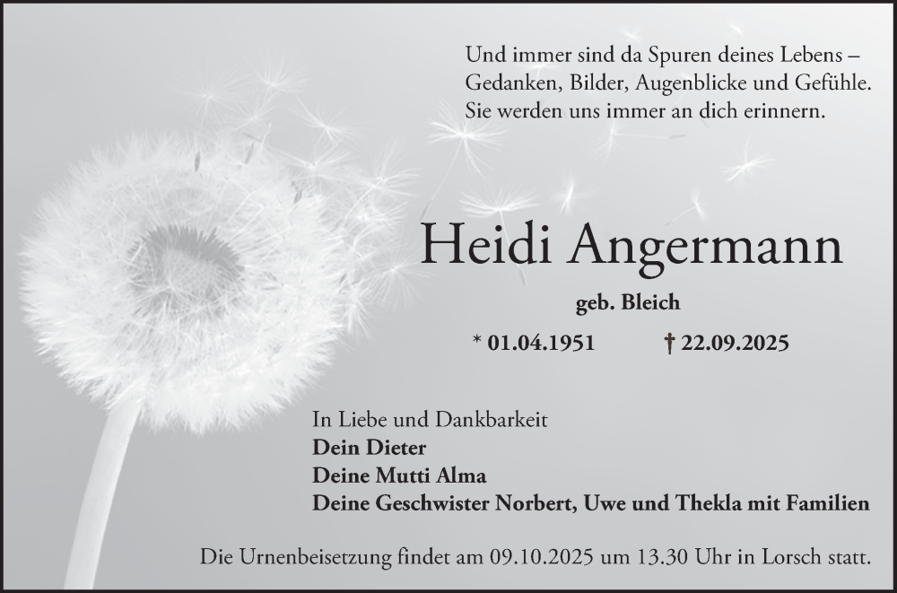 Hier finden Sie alle Traueranzeigen aus der Zeitung, die bisher für Heidi Angermann erschienen sind. Weitere Traueranzeigen, die in der Zeitung erscheinen, werden hier ebenfalls aufgelistet