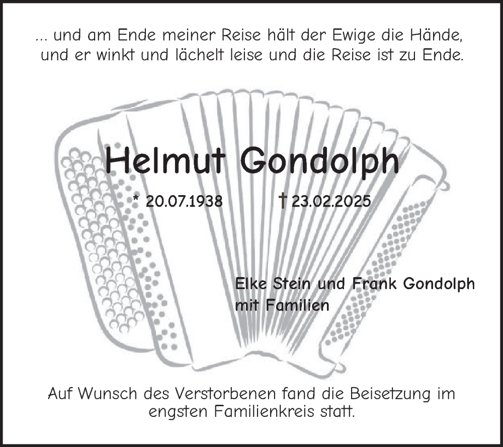 Hier finden Sie alle Traueranzeigen aus der Zeitung, die bisher für Helmut Gondolph erschienen sind. Weitere Traueranzeigen, die in der Zeitung erscheinen, werden hier ebenfalls aufgelistet