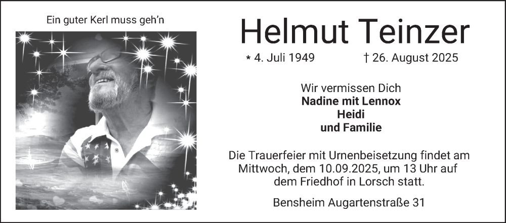 Hier finden Sie alle Traueranzeigen aus der Zeitung, die bisher für Helmut Teinzer erschienen sind. Weitere Traueranzeigen, die in der Zeitung erscheinen, werden hier ebenfalls aufgelistet