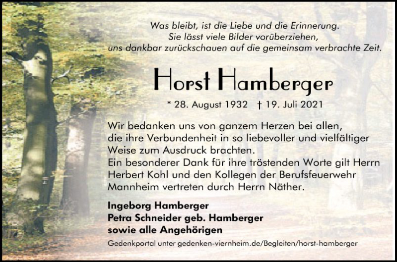 Hier finden Sie alle Traueranzeigen aus der Zeitung, die bisher für Horst Hamberger erschienen sind. Weitere Traueranzeigen, die in der Zeitung erscheinen, werden hier ebenfalls aufgelistet