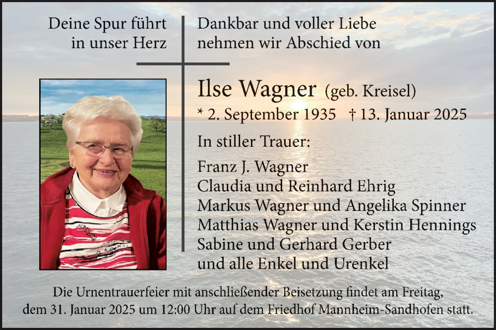 Hier finden Sie alle Traueranzeigen aus der Zeitung, die bisher für Ilse Wagner erschienen sind. Weitere Traueranzeigen, die in der Zeitung erscheinen, werden hier ebenfalls aufgelistet