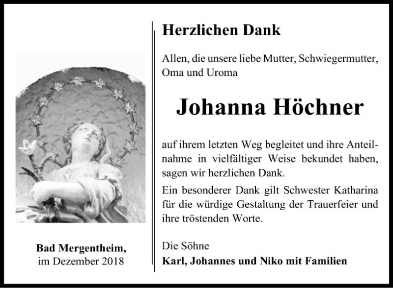 Hier finden Sie alle Traueranzeigen aus der Zeitung, die bisher für Johanna Höchner erschienen sind. Weitere Traueranzeigen, die in der Zeitung erscheinen, werden hier ebenfalls aufgelistet