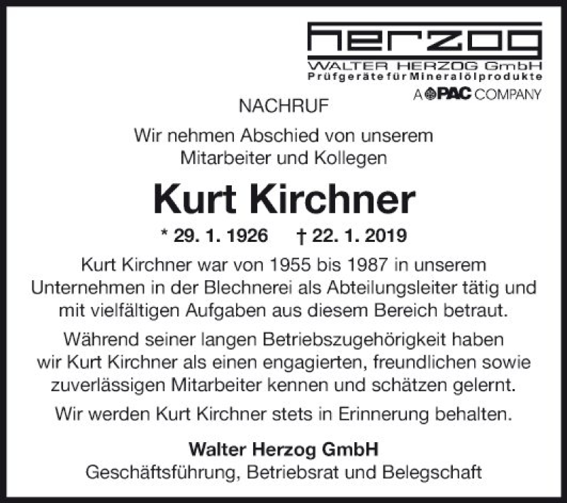 Hier finden Sie alle Traueranzeigen aus der Zeitung, die bisher für Kurt Kirchner erschienen sind. Weitere Traueranzeigen, die in der Zeitung erscheinen, werden hier ebenfalls aufgelistet