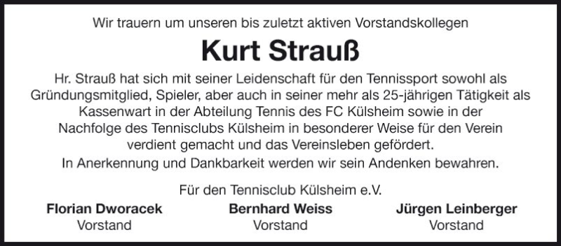 Hier finden Sie alle Traueranzeigen aus der Zeitung, die bisher für Kurt Strauß erschienen sind. Weitere Traueranzeigen, die in der Zeitung erscheinen, werden hier ebenfalls aufgelistet