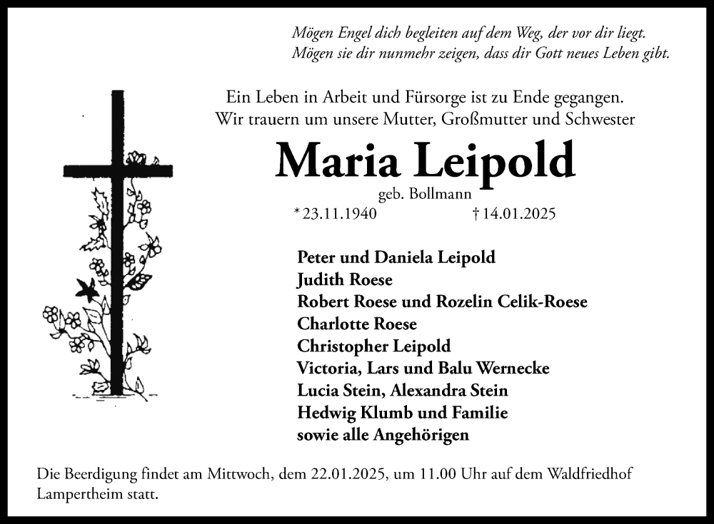 Hier finden Sie alle Traueranzeigen aus der Zeitung, die bisher für Maria Leipold erschienen sind. Weitere Traueranzeigen, die in der Zeitung erscheinen, werden hier ebenfalls aufgelistet