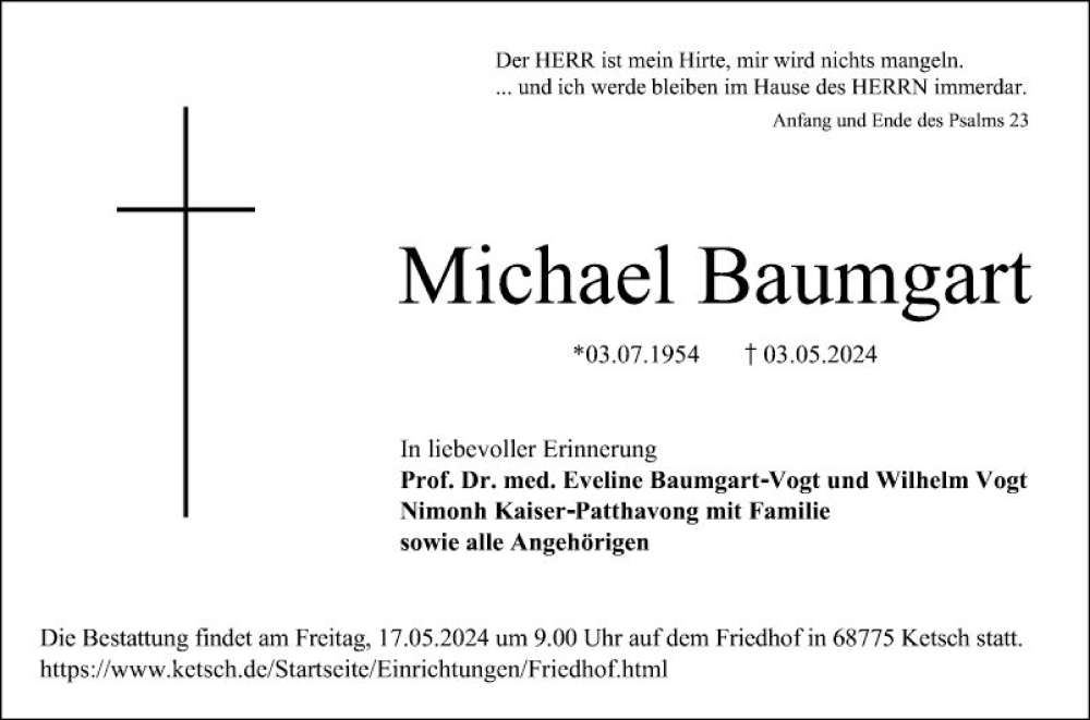 Hier finden Sie alle Traueranzeigen aus der Zeitung, die bisher für Michael Baumgart erschienen sind. Weitere Traueranzeigen, die in der Zeitung erscheinen, werden hier ebenfalls aufgelistet