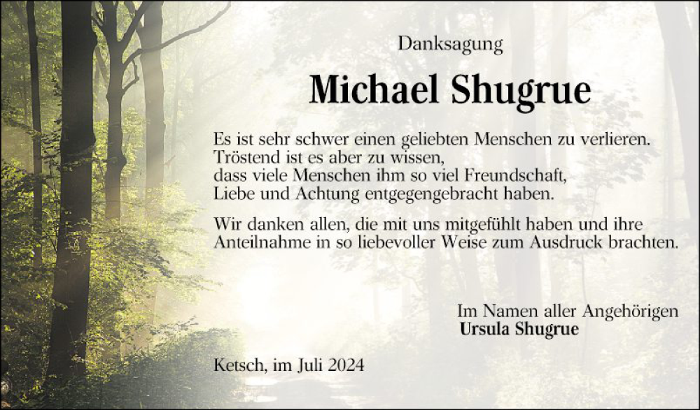 Hier finden Sie alle Traueranzeigen aus der Zeitung, die bisher für Michael Shugrue erschienen sind. Weitere Traueranzeigen, die in der Zeitung erscheinen, werden hier ebenfalls aufgelistet