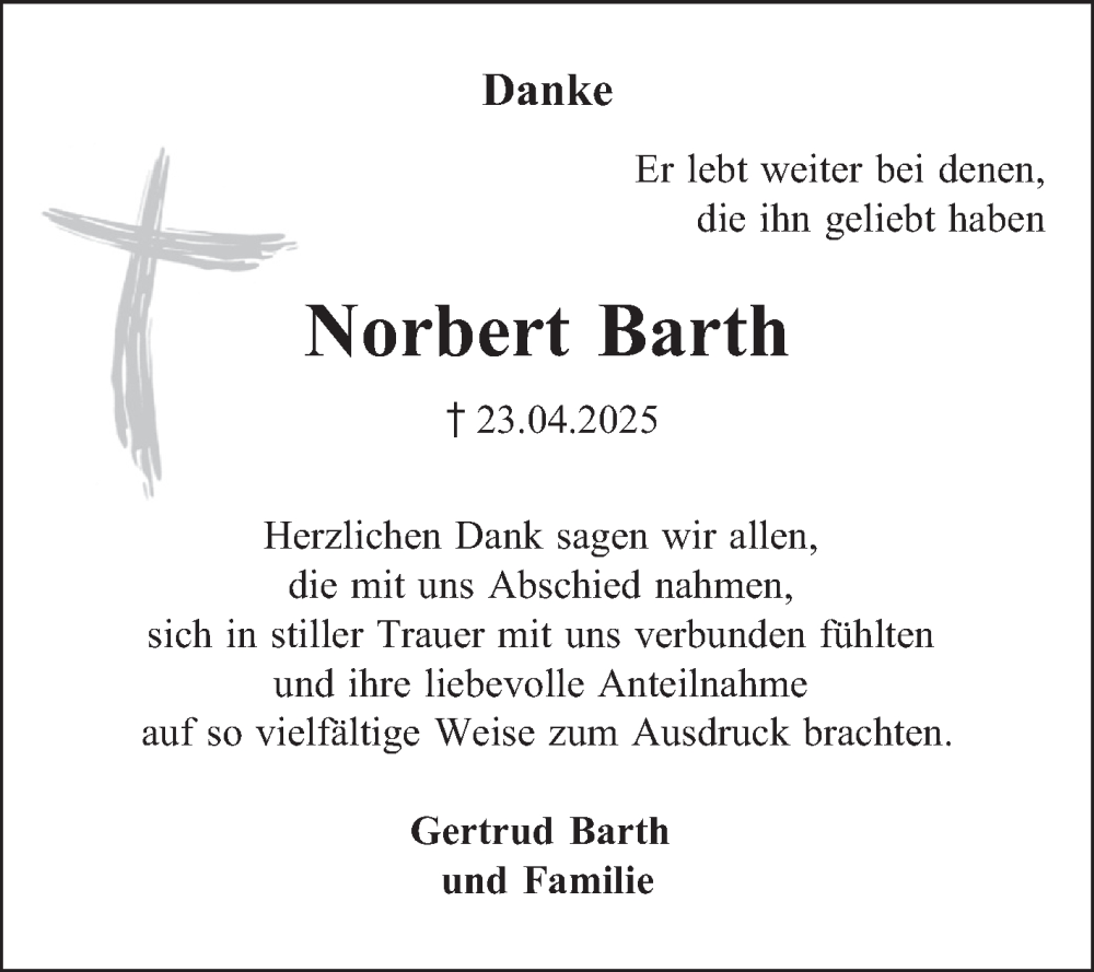 Hier finden Sie alle Traueranzeigen aus der Zeitung, die bisher für Norbert Barth erschienen sind. Weitere Traueranzeigen, die in der Zeitung erscheinen, werden hier ebenfalls aufgelistet
