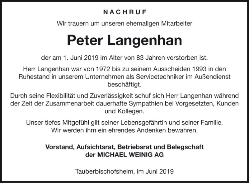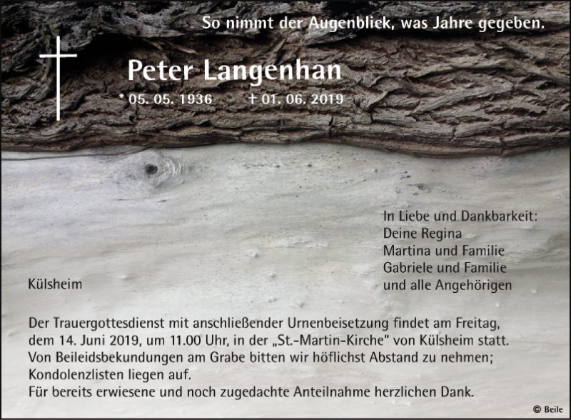 Hier finden Sie alle Traueranzeigen aus der Zeitung, die bisher für Peter Langenhan erschienen sind. Weitere Traueranzeigen, die in der Zeitung erscheinen, werden hier ebenfalls aufgelistet