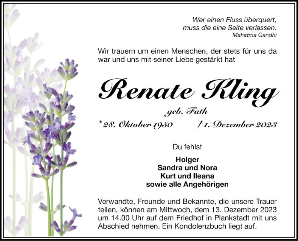 Hier finden Sie alle Traueranzeigen aus der Zeitung, die bisher für Renate Kling erschienen sind. Weitere Traueranzeigen, die in der Zeitung erscheinen, werden hier ebenfalls aufgelistet