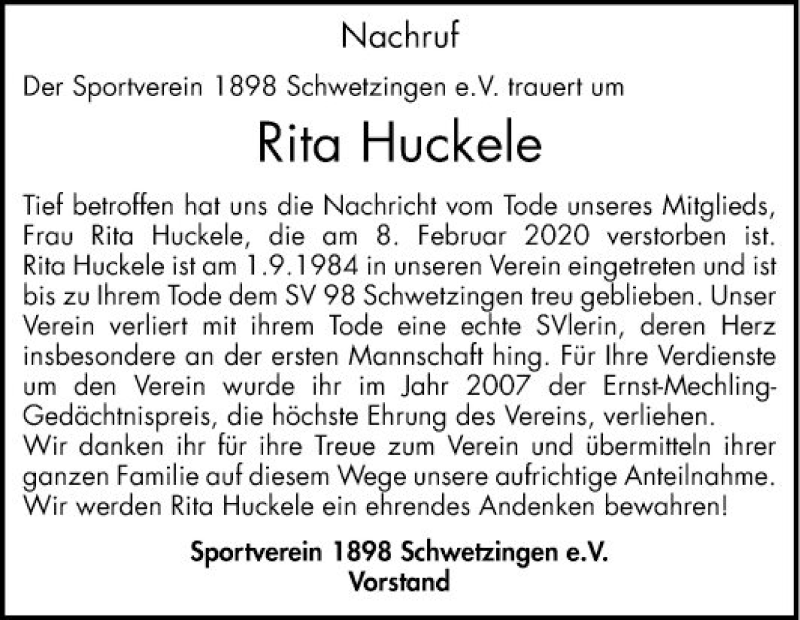 Hier finden Sie alle Traueranzeigen aus der Zeitung, die bisher für Rita Huckele erschienen sind. Weitere Traueranzeigen, die in der Zeitung erscheinen, werden hier ebenfalls aufgelistet