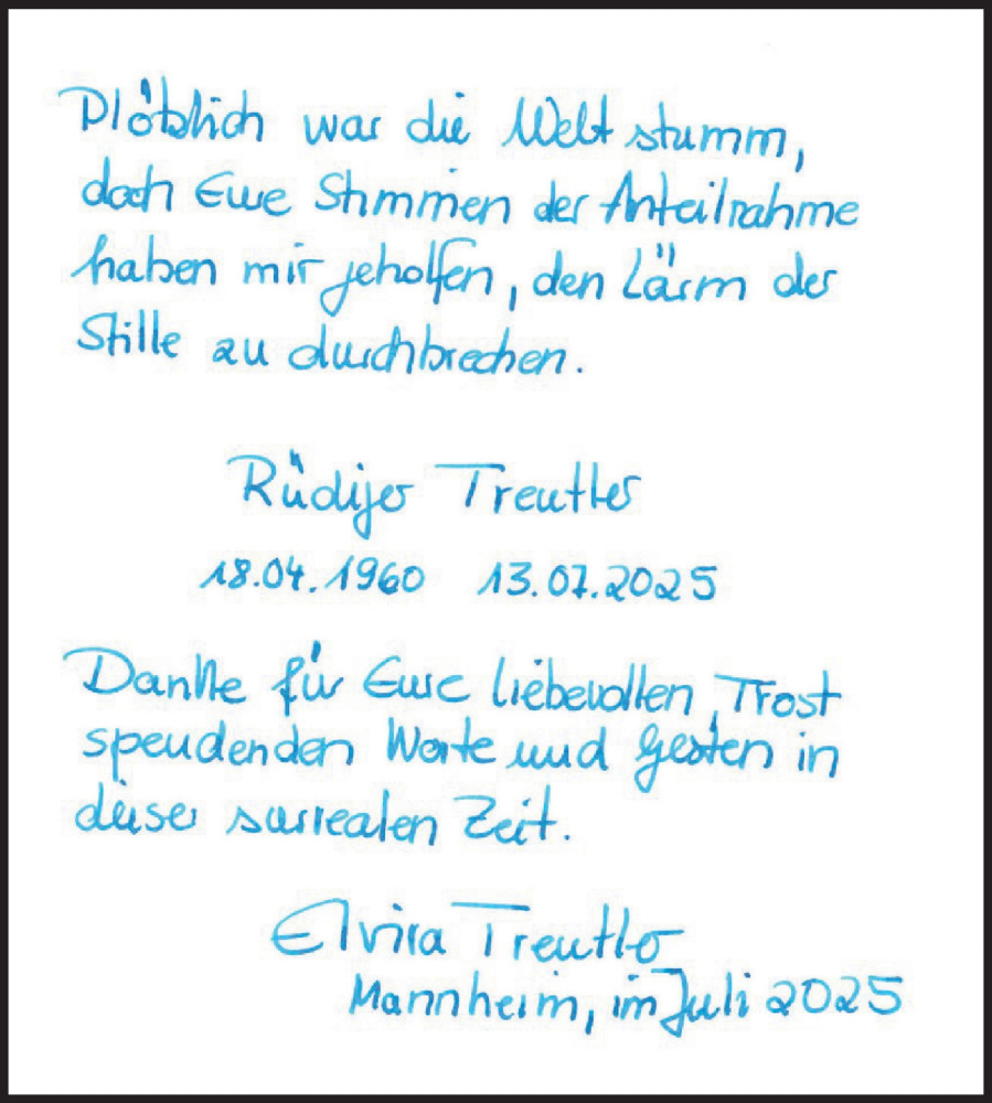 Hier finden Sie alle Traueranzeigen aus der Zeitung, die bisher für Rüdiger Treutler erschienen sind. Weitere Traueranzeigen, die in der Zeitung erscheinen, werden hier ebenfalls aufgelistet