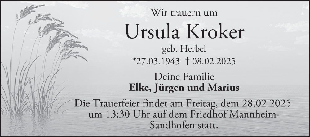 Hier finden Sie alle Traueranzeigen aus der Zeitung, die bisher für Ursula Kroker erschienen sind. Weitere Traueranzeigen, die in der Zeitung erscheinen, werden hier ebenfalls aufgelistet