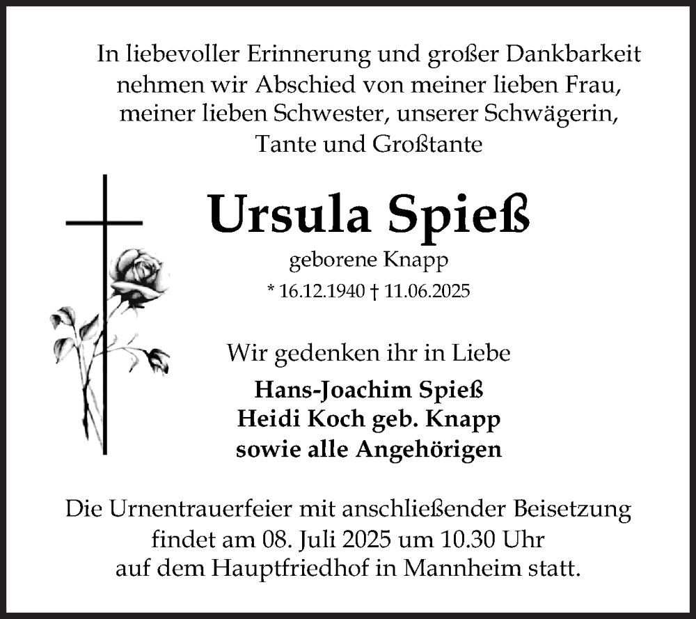 Hier finden Sie alle Traueranzeigen aus der Zeitung, die bisher für Ursula Spieß erschienen sind. Weitere Traueranzeigen, die in der Zeitung erscheinen, werden hier ebenfalls aufgelistet