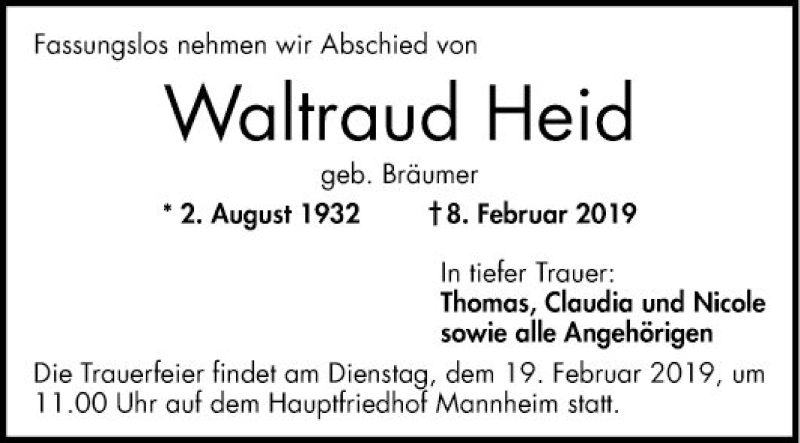 Hier finden Sie alle Traueranzeigen aus der Zeitung, die bisher für Waltraud Held erschienen sind. Weitere Traueranzeigen, die in der Zeitung erscheinen, werden hier ebenfalls aufgelistet