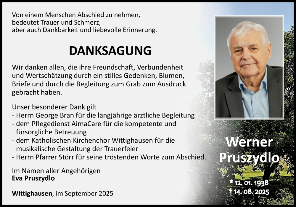 Hier finden Sie alle Traueranzeigen aus der Zeitung, die bisher für Werner Pruszydlo erschienen sind. Weitere Traueranzeigen, die in der Zeitung erscheinen, werden hier ebenfalls aufgelistet