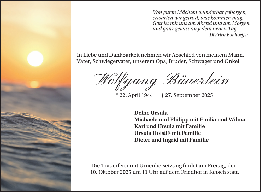 Hier finden Sie alle Traueranzeigen aus der Zeitung, die bisher für Wolfgang Bäuerlein erschienen sind. Weitere Traueranzeigen, die in der Zeitung erscheinen, werden hier ebenfalls aufgelistet